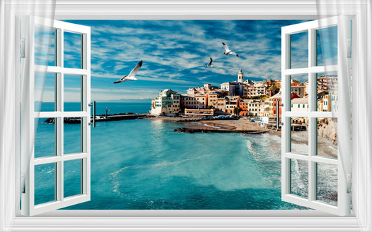 Wallpaper Murals Peel and Stick Removable View of The City Beautiful Sea & Birds from Window High Quality