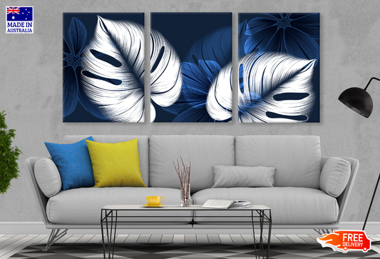 3 Set of White Blue Flower Tree High Quality print 100% Australian made wall Canvas ready to hang