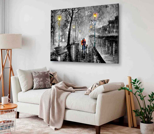 Bella Home Couple Walking at Night Painting Print Canvas Ready to hang