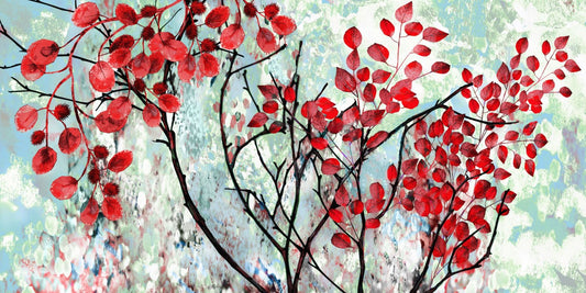 Tree with Red Leaves on Blue Painting Print 100% Australian Made