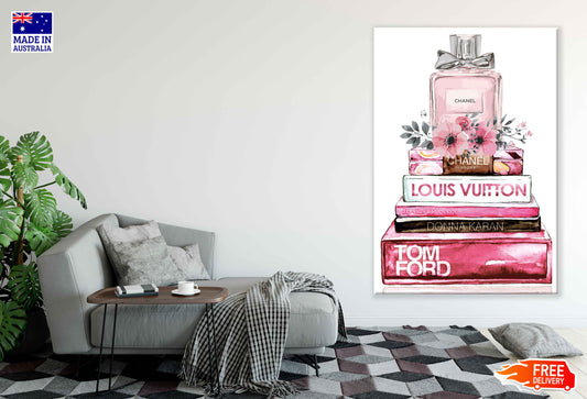 Perfume Bottle, Flowers & Fashion Books Watercolor Painting Print 100% Australian Made