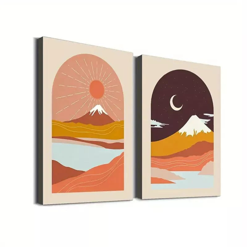 2pcs Modern Abstract Landscape Sunrise and Night Sky Framed 50x75cm - High Quality Print 100% Australian Made Wall Canvas Ready to Hang