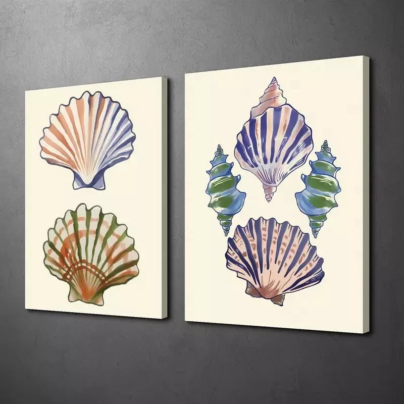 2pcs Nordic Style, Blue Shell Canvas Framed 50x75cm - High Quality Print 100% Australian Made Wall Canvas Ready to Hang