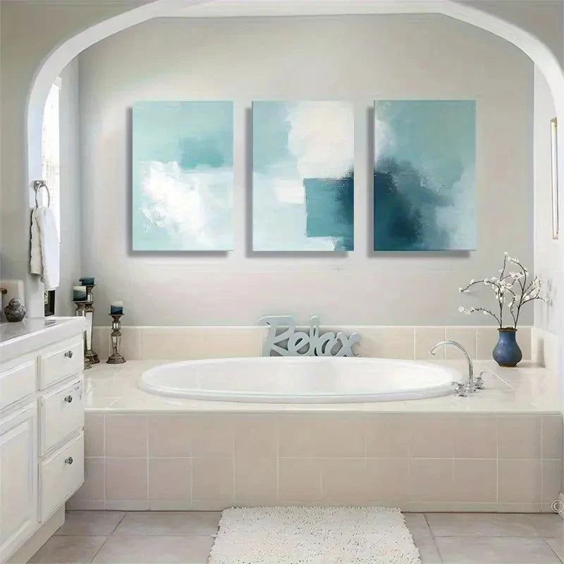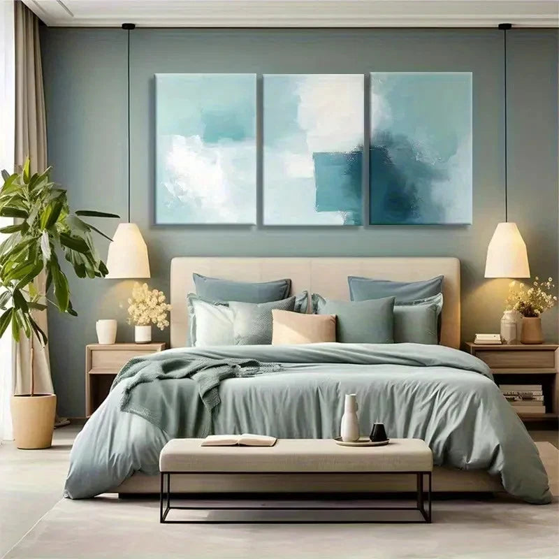 3pcs Abstract Blue-Green Block Wall Art Painting Metal Print Ready to Hang Art