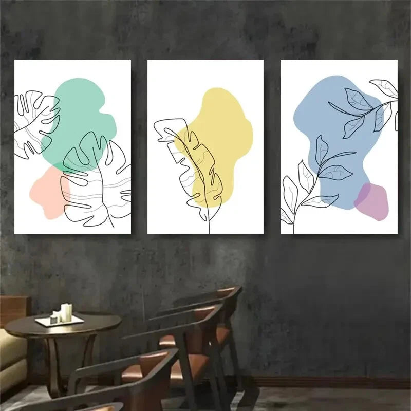 3pcs Abstract Botanical Line Colorful Shapes Metal Print Ready to Hang Art
