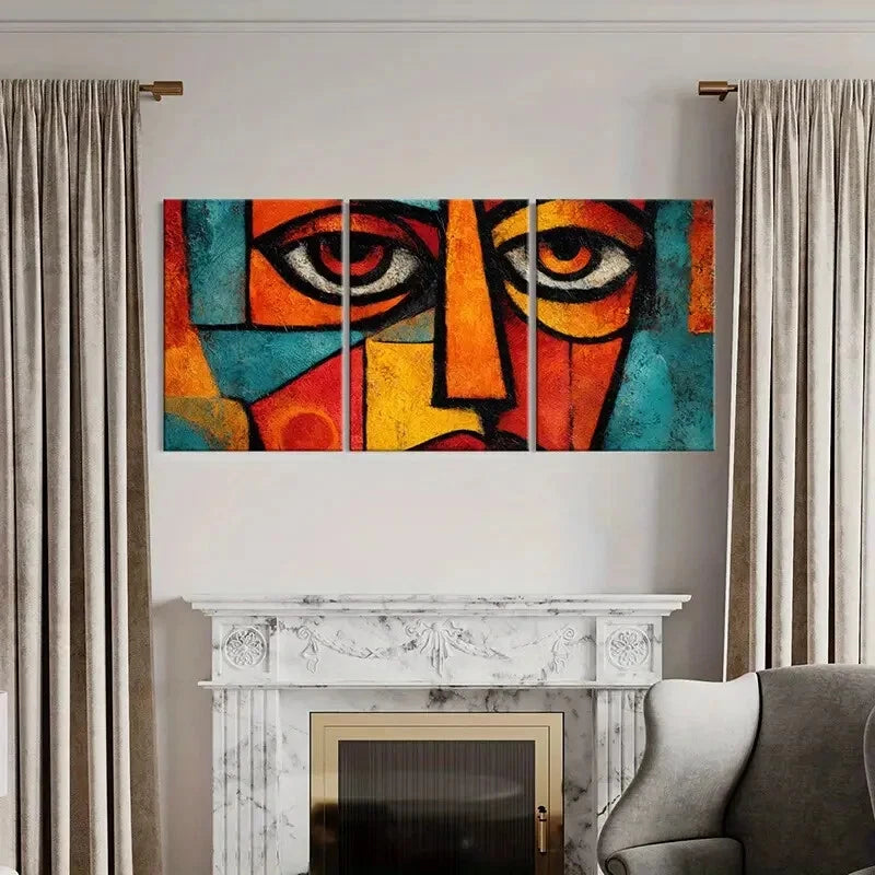 3pcs Abstract Cubism Art Bold Colors Geometric Metal Print Ready to Hang Art