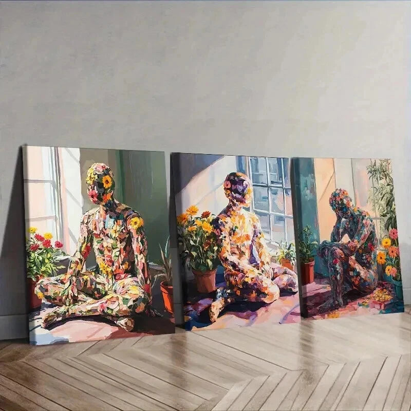 3pcs Abstract Design with Sunflowers & Floral Wall Art Set Canvas Framed 50x70cm - High Quality Print 100% Australian Made Wall Canvas Ready to Hang