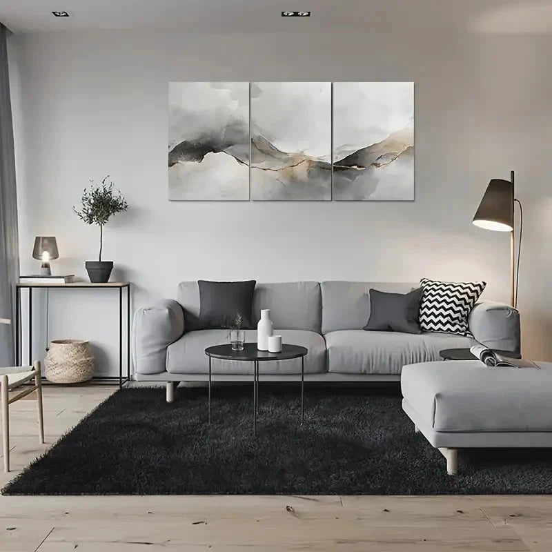 3pcs Abstract Grey and Golden Hues Metal Print Ready to Hang Art