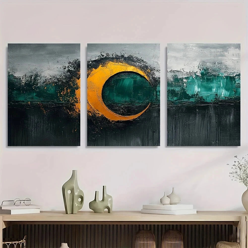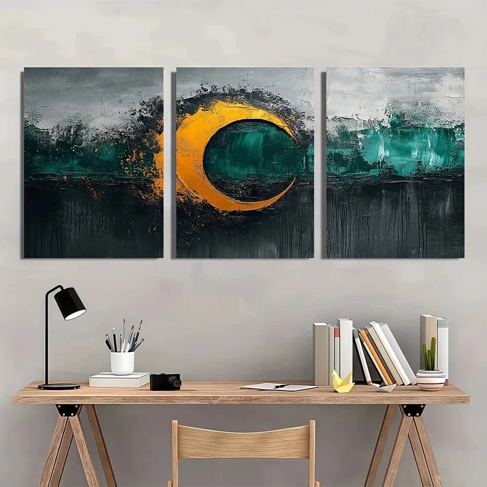 3pcs Abstract Knots Bold Black Green Golden Metal Print Ready to Hang Art