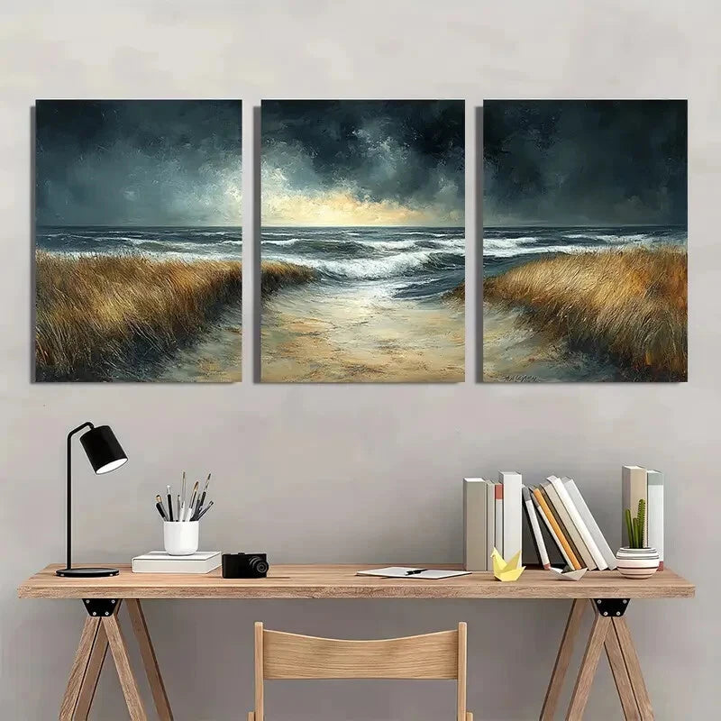 3pcs Abstract Stormy Skies & Ocean Waves Metal Print Ready to Hang Art
