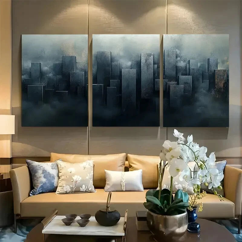3pcs Abstract Urban Life in Grays and Shades Metal Print Ready to Hang Art