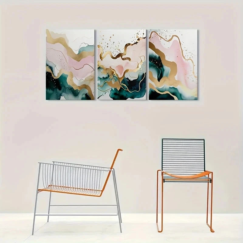 3pcs Abstract Watercolor Golden Accents Metal Print Ready to Hang Art