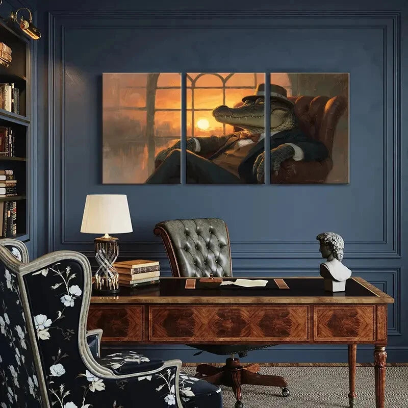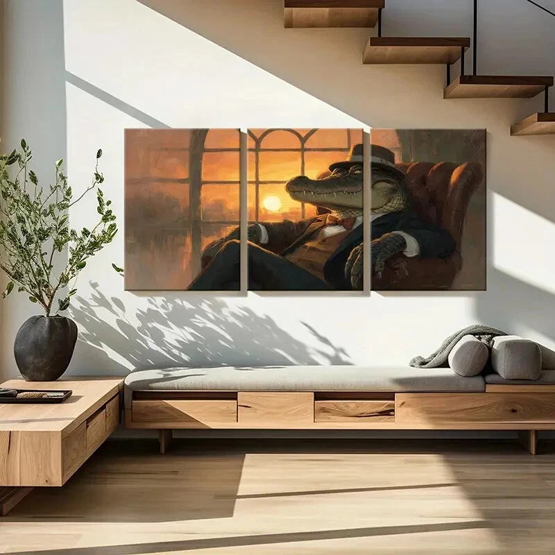 3pcs Alligator Gentleman Elegant Suit Hat Metal Print Ready to Hang Art