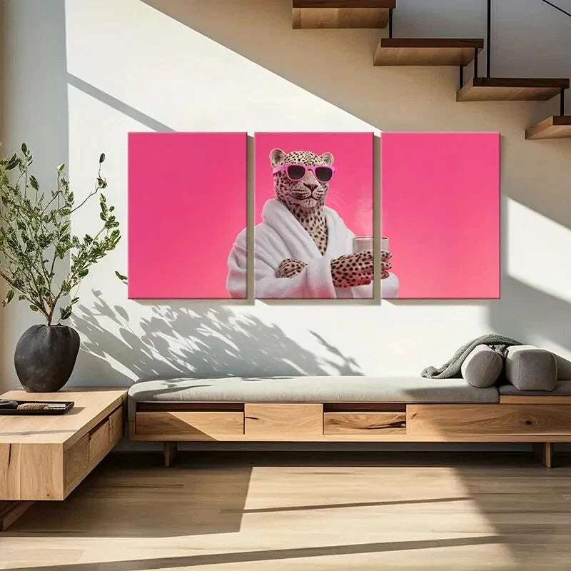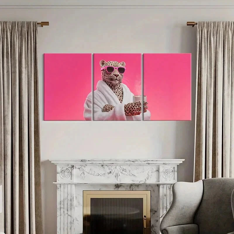 3pcs Artistic Leopard Wearing Fashion Glasses Metal Print Ready to Hang Art