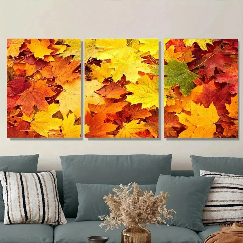 3pcs Autumn Leaves Triptych Vibrant Fall Colors Metal Print Ready to Hang Art