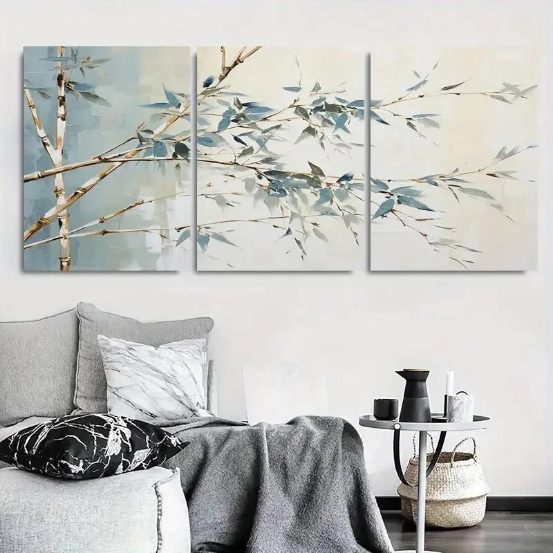 3pcs Bamboo Branches Tranquil Nature Metal Print Ready to Hang Art