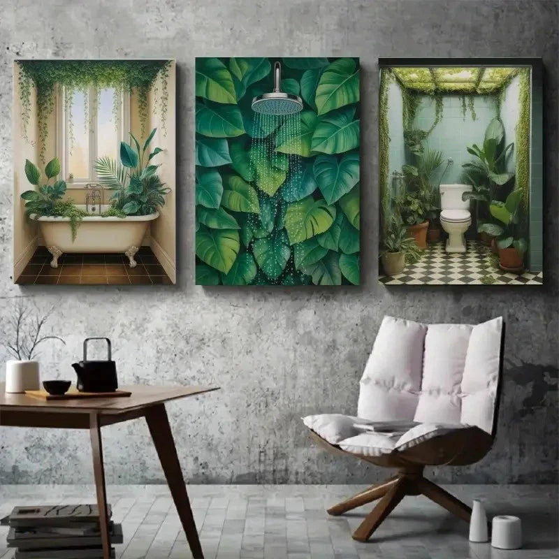 3pcs Bathroom Scenes with Shower Bathtub Metal Print Ready to Hang Art