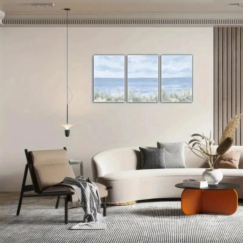 3pcs Beach Art with Light Blue & Green Waves Metal Print Ready to Hang Art