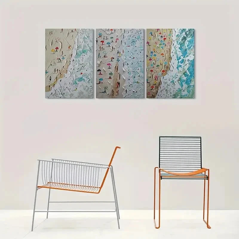 3pcs Beach Scene Colorful Umbrellas Metal Print Ready to Hang Art