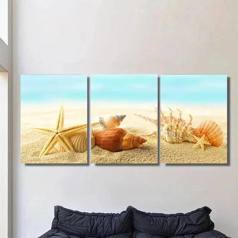 3pcs Beach Seashells and Starfish Triptych Metal Print Ready to Hang Art