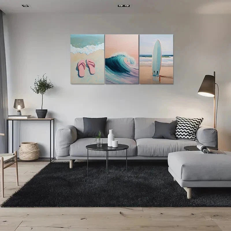 3pcs Beach Themed Ocean Waves Metal Print Ready to Hang Art