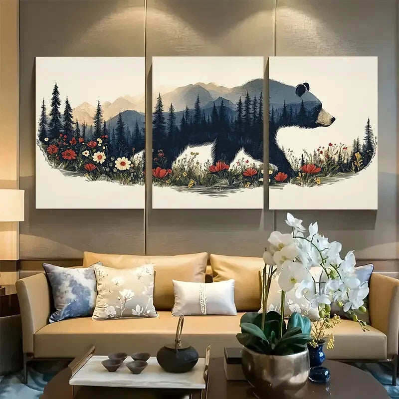 3pcs Bear-Themed Scandinavian Linocut Design Metal Print Ready to Hang Art