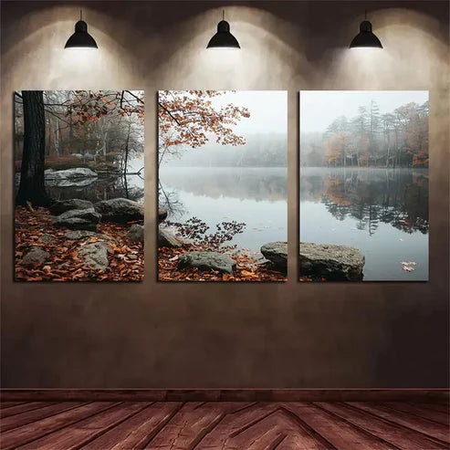 3pcs Beautiful Lake in Autumn Trees & Forest Canvas Framed 60x90cm - High Quality Print 100% Australian Made Wall Canvas Ready to Hang