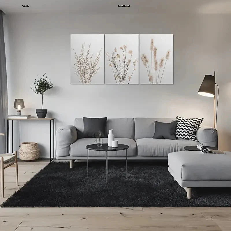3pcs Beige Floral Botanical Themed Wall Art Set Canvas Framed 60x90cm - High Quality Print 100% Australian Made Wall Canvas Ready to Hang