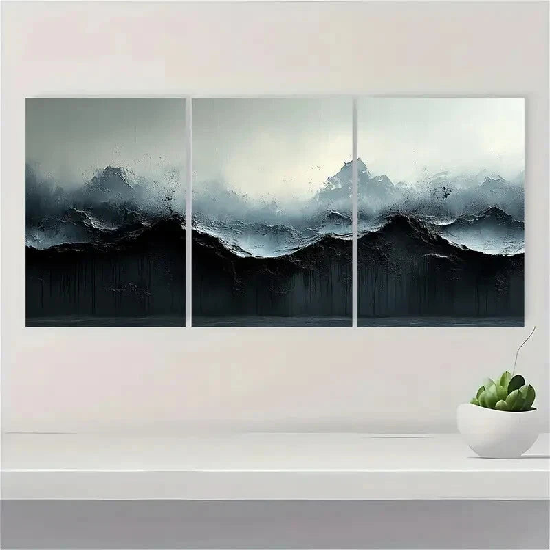 3pcs Black and White Abstract Texture Painting Metal Print Ready to Hang Art