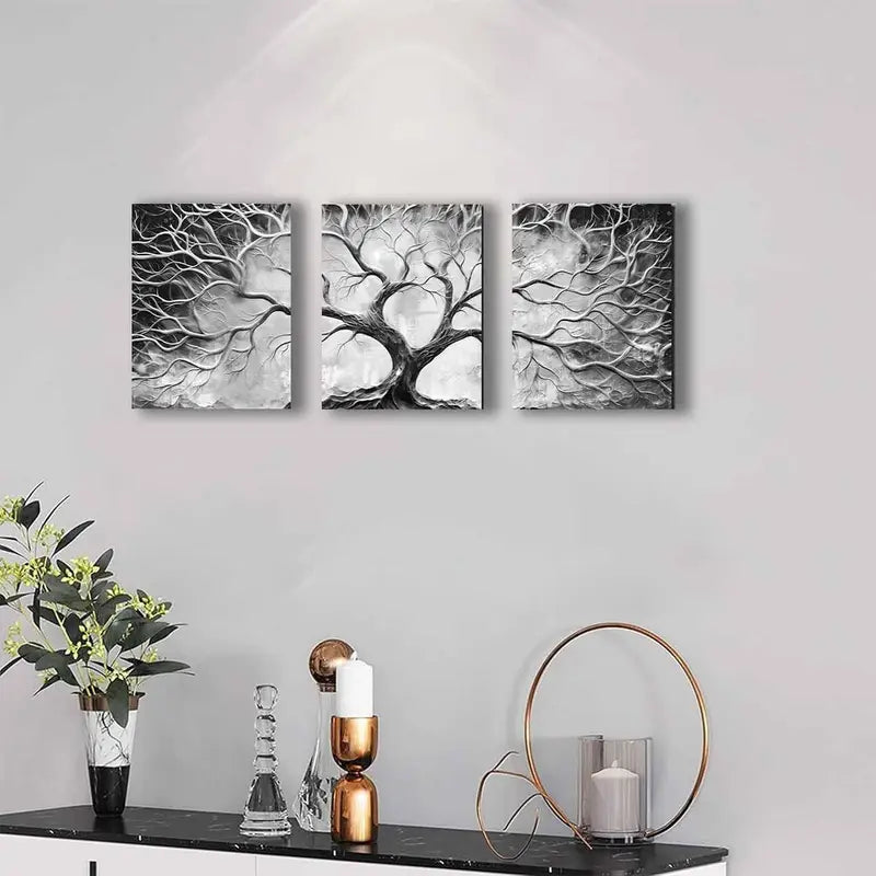3pcs Black And White Tree Wall Art Metal Print Ready to Hang Art