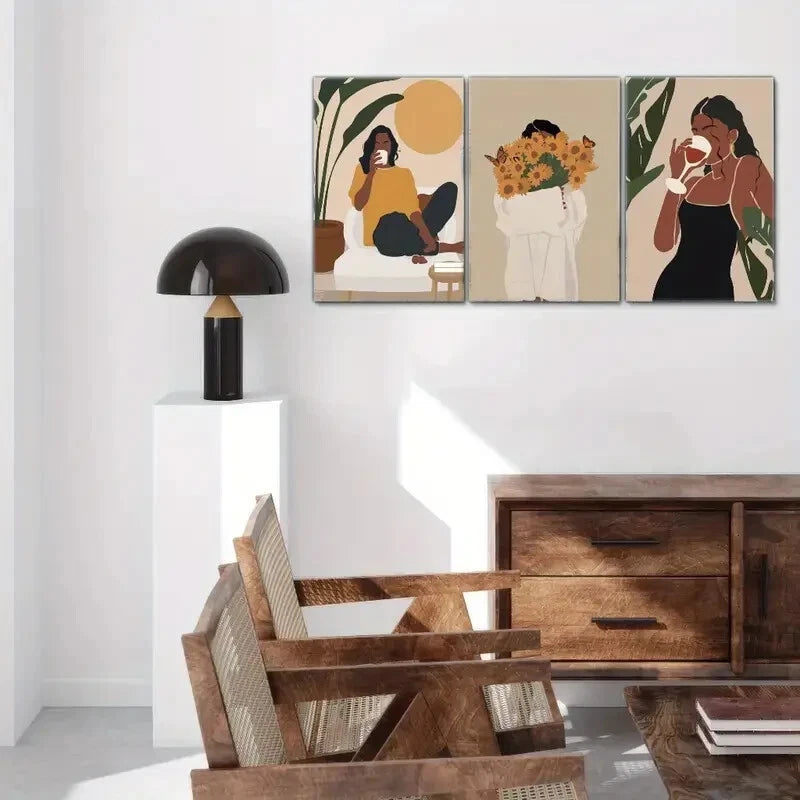 3pcs Black Female Art Poster Urban Art Metal Print Ready to Hang Art
