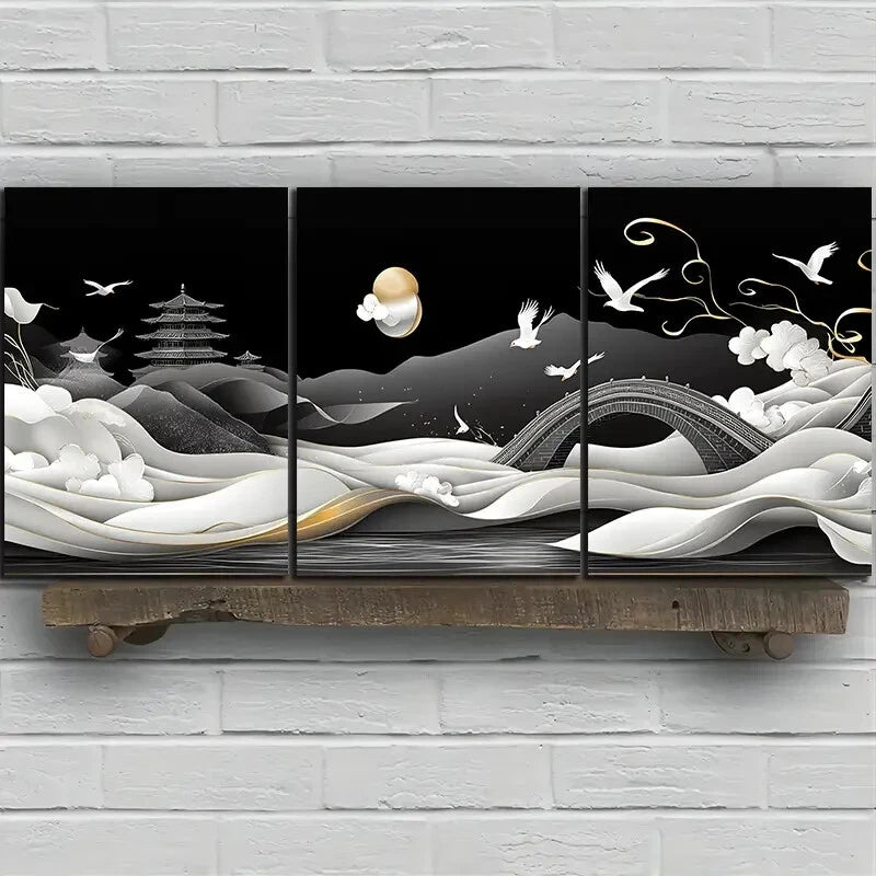 3pcs Black & White Beautiful Arch Bridge Metal Print Ready to Hang Art