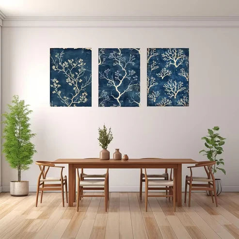 3pcs Blue And White Tree Branches Wall Art Set Canvas Framed 50x70cm - High Quality Print 100% Australian Made Wall Canvas Ready to Hang