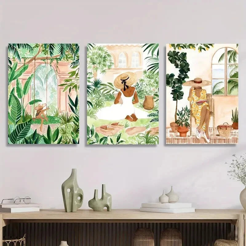 3pcs Bohemian Tropical Plants Metal Print Ready to Hang Art