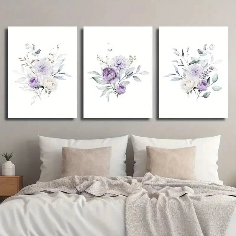 3pcs Bouquet Illustration Plant Flower Perfect Wall Art Set Canvas Framed 40x60cm - High Quality Print 100% Australian Made Wall Canvas Ready to Hang