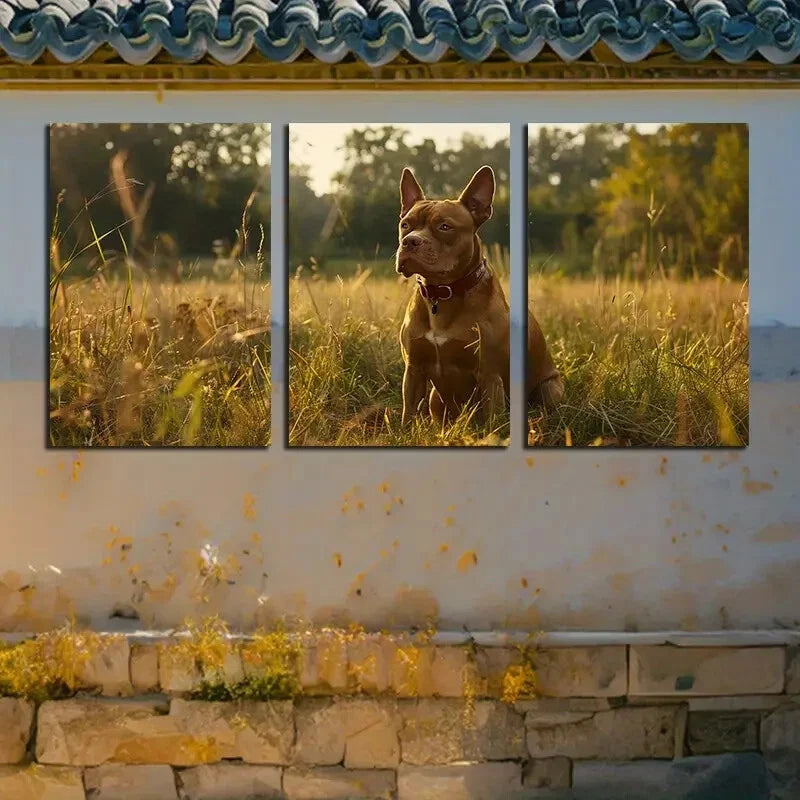 3pcs Bulldog in Field Illustration Metal Print Ready to Hang Art