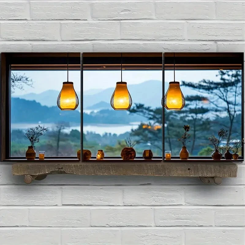 3pcs Chandelier Hanging Golden Lamps Metal Print Ready to Hang Art