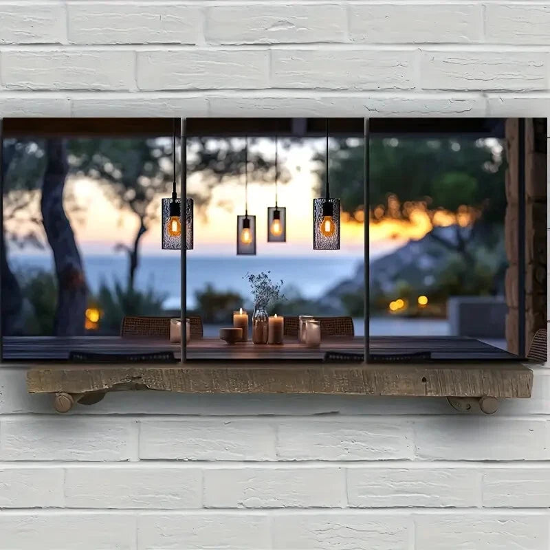 3pcs Chandelier Nature Scenery Lanterns Metal Print Ready to Hang Art