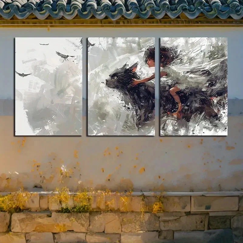 3pcs Charming Black Cat Girl Abstract Design Metal Print Ready to Hang Art