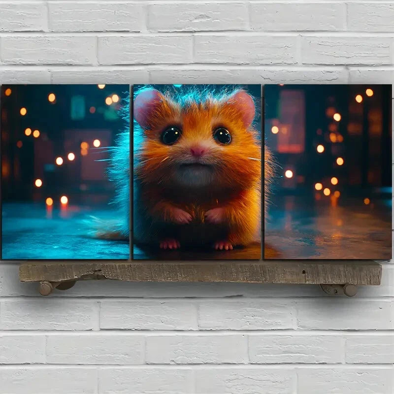 3pcs Charming Hamster Trio Animal Themed Metal Print Ready to Hang Art