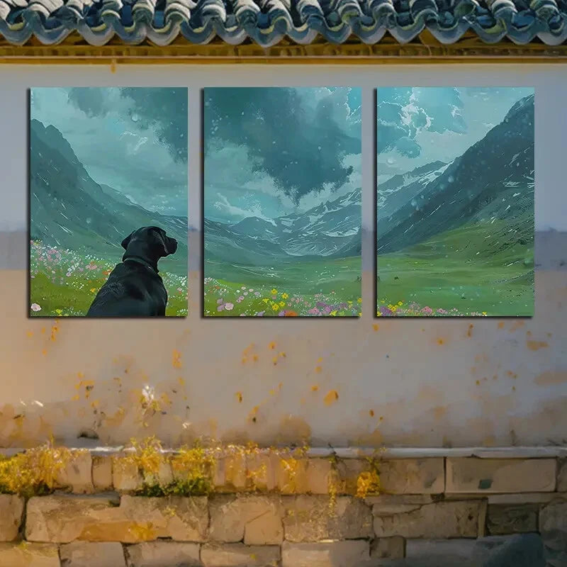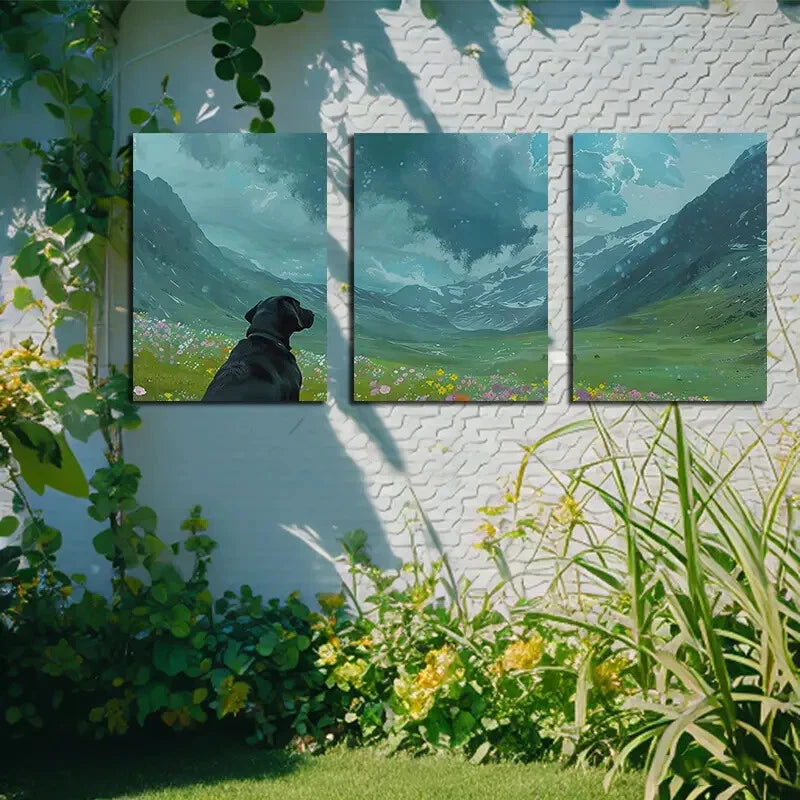 3pcs Charming Neon Rainbow Flowers & Puppy Metal Print Ready to Hang Art