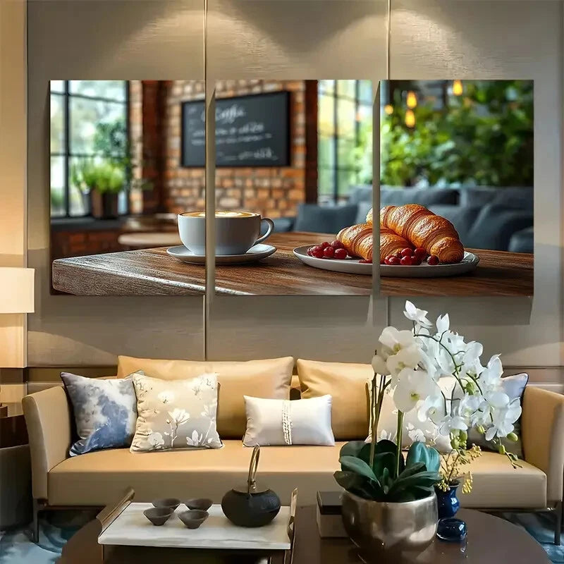 3pcs Coffee and Croissant French Cafe Inspired Metal Print Ready to Hang Art