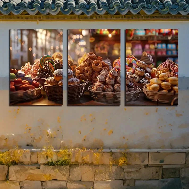 3pcs Colorful Candies and Desserts, Modern Design Metal Print Ready to Hang Art