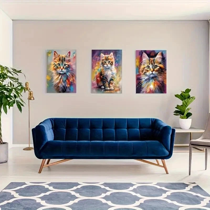 3pcs Colorful Oil Painting Kittens in Playful Pose Metal Print Ready to Hang Art