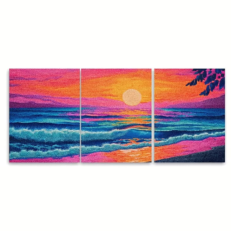3pcs Depicting Beach Waves at Dawn Metal Print Ready to Hang Art