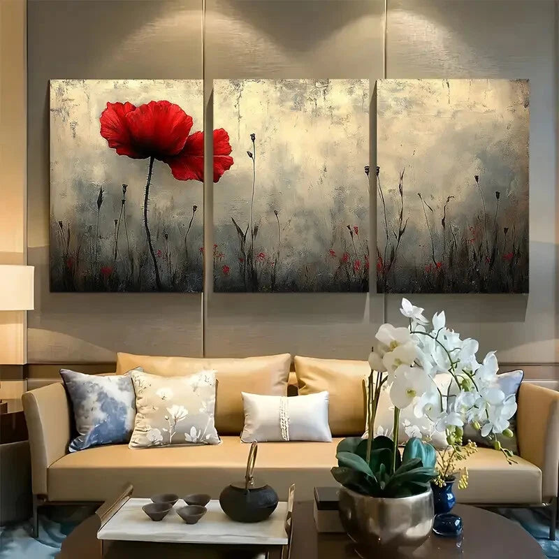 3pcs Dramatic Rustic California Poppy Decor Metal Print Ready to Hang Art