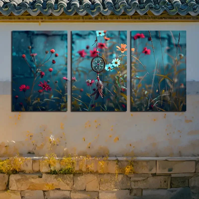 3pcs Dream Catcher Floral Illustration Metal Print Ready to Hang Art