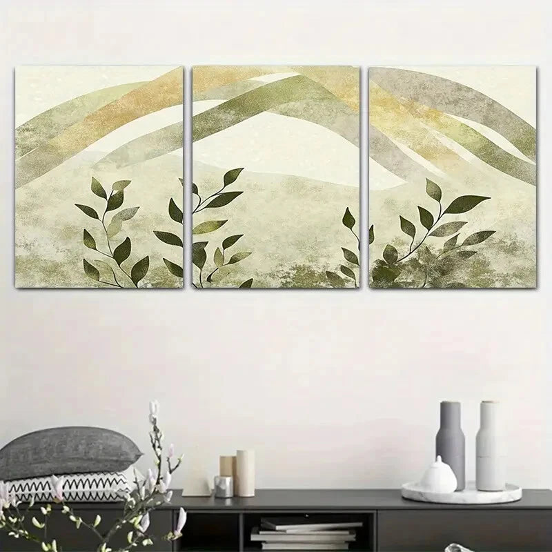 3pcs Elegant Green Leaf Minimalist Plant Metal Print Ready to Hang Art