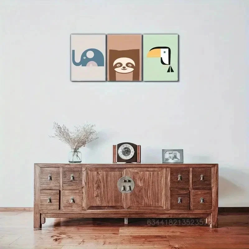 3pcs Elephant Sloth Toucan Wild Animal Metal Print Ready to Hang Art