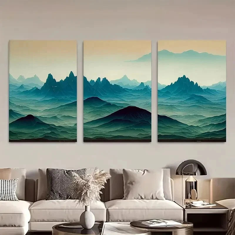 3pcs Emerald Green Rolling Hills Fantasy Mountains Metal Print Ready to Hang Art